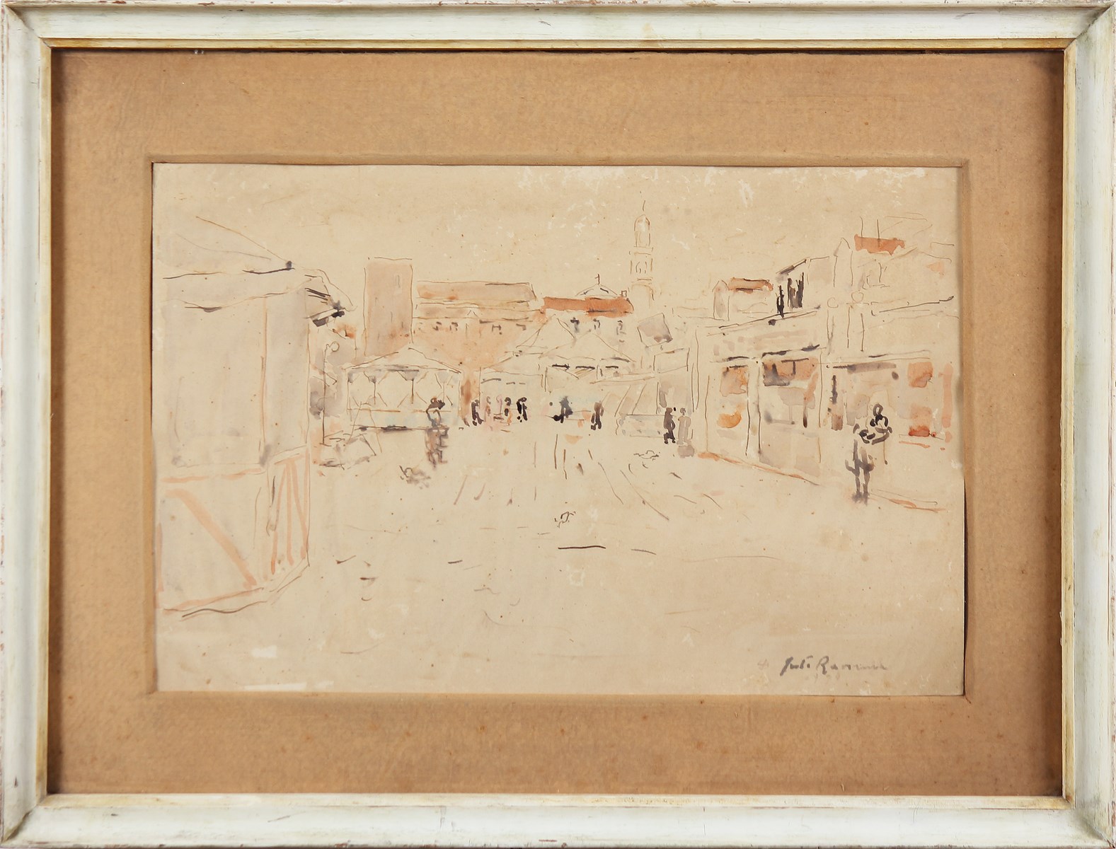 RAVENNA JUTI (1897 - 1972) Campo S. Margherita o Margarita, Venezia. 1939. Acquerello su carta. Cm 50,00 x 32,50. Firma e data in basso a destra. Cornice presente