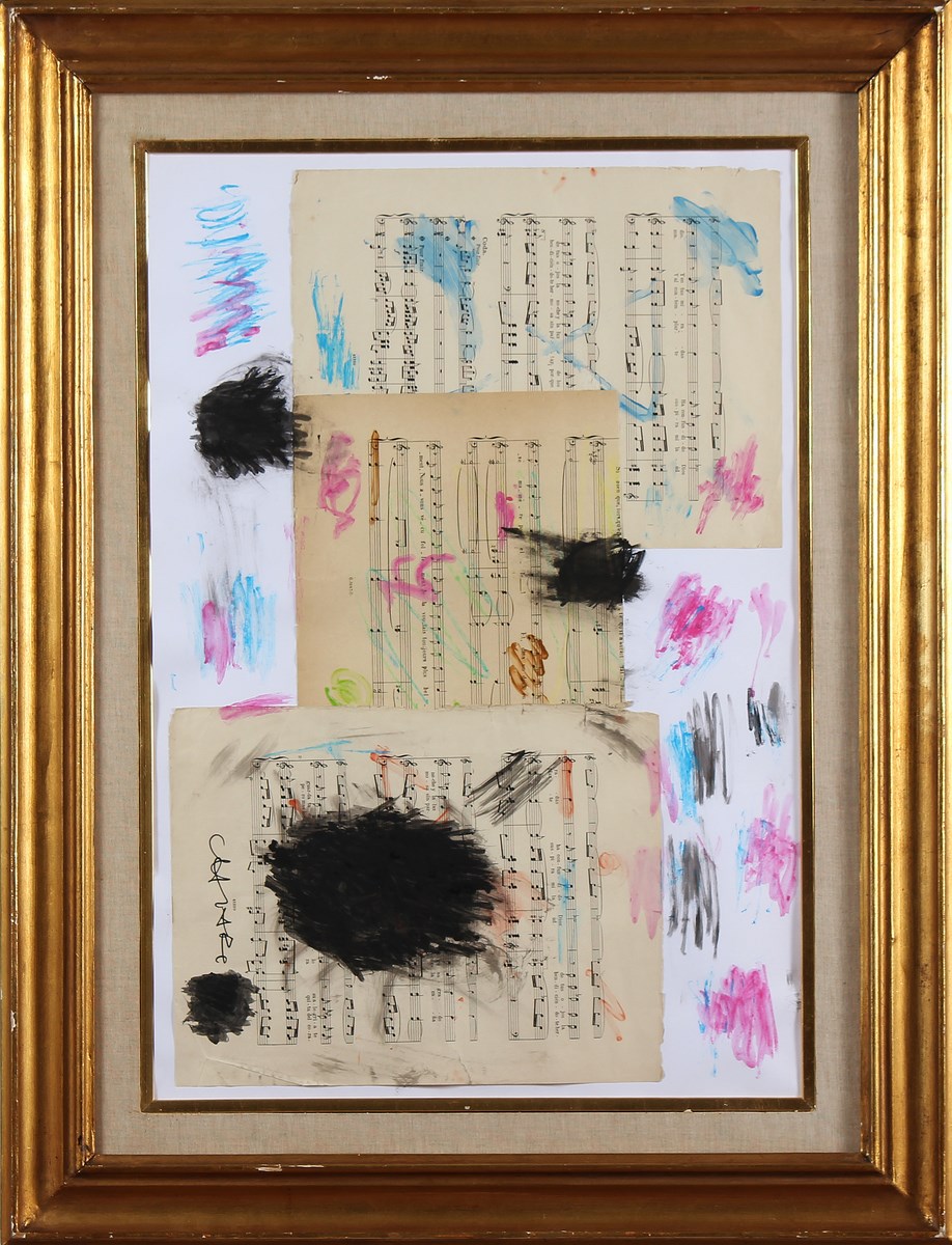 CHIARI GIUSEPPE (1926 - 2007) Spartiti. Tecnica mista su carta. Cm 67,00 x 46,00. Firma in basso a destra. Autentica dell'artista su fotografia. Cornice presente