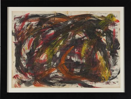CARMASSI ARTURO (n. 1925) Senza titolo. 1987. Tecnica mista su carta. Cm 70,00 x 50,00. Firma e data a matita in basso a sinistra. Autentica dell'artista su fotografia. Cornice presente