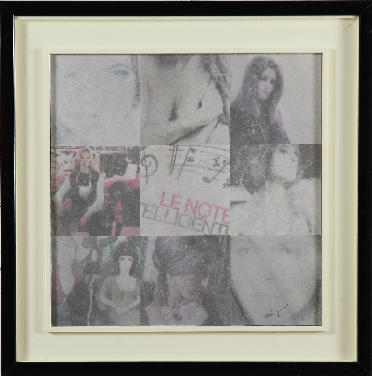MALIPIERO (n. 1934) Decollage. 2009. Collage. Cm 35,50 x 35,50. Firma in basso a destra. Al retro firma, data e titolo. Cornice presente