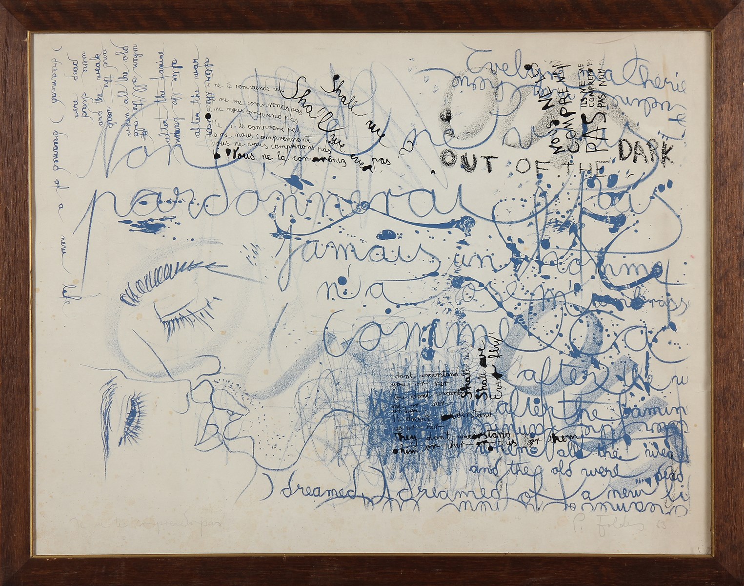 FOLDES PETER (1924 - 1978) Je ne te comprends pas. 1963. Tecnica mista su carta. Cm 70,00 x 54,00. Firma , titolo e data in basso a matita. Cornice presente