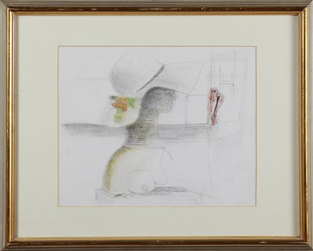 AUGUSTO PEREZ (1929 - 2001) Senza titolo. 1973. Tecnica mista su carta. Cm 40,00 x 33,00. Firma e data in basso a matita. Cornice presente