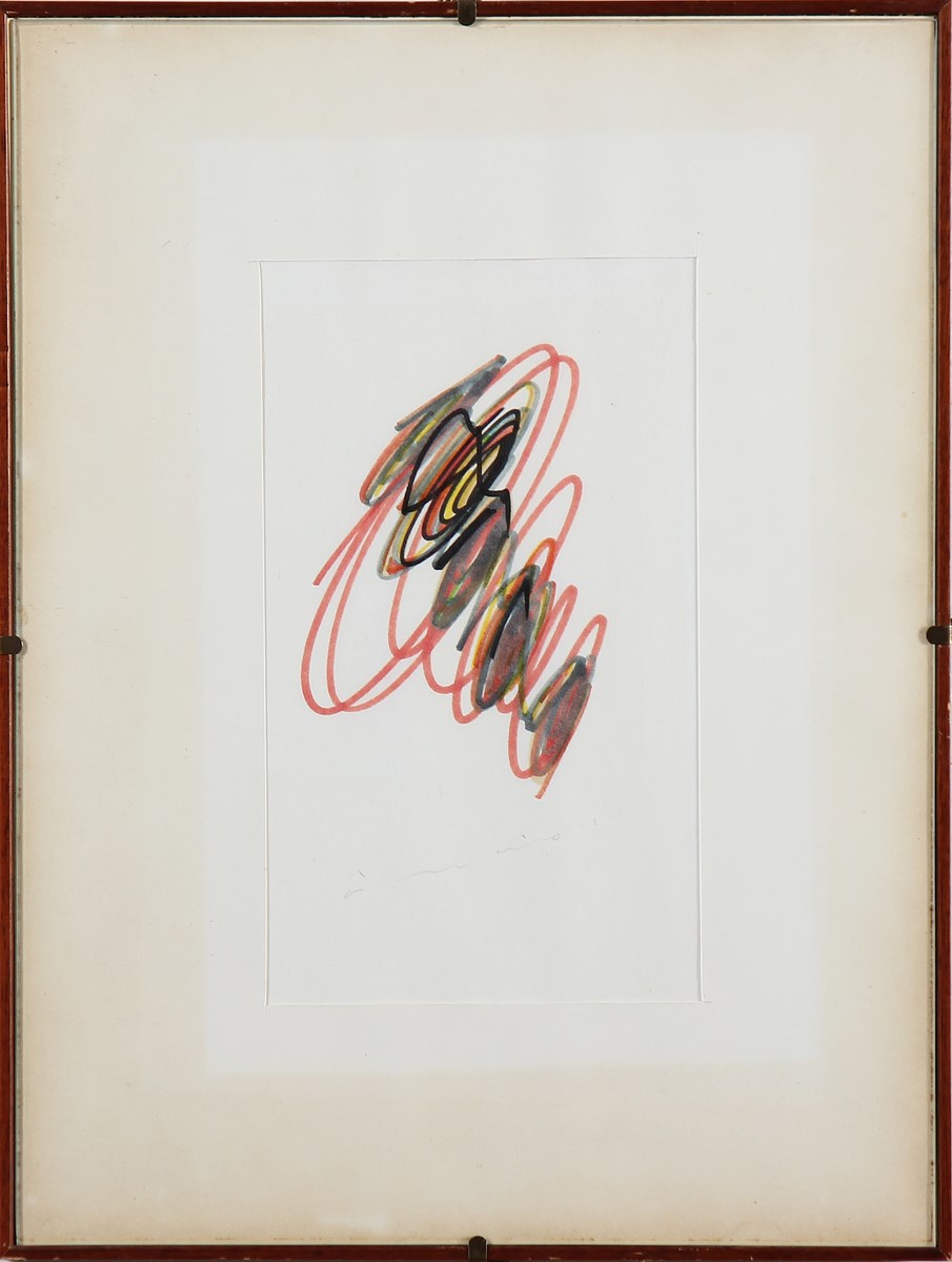VIANELLO VINICIO (1923 - 1999) Senza titolo. Pennarelli su carta Kozo. Cm 22,50 x 28,00. Firma in basso a matita. Carta filigranata. Cornice presente
