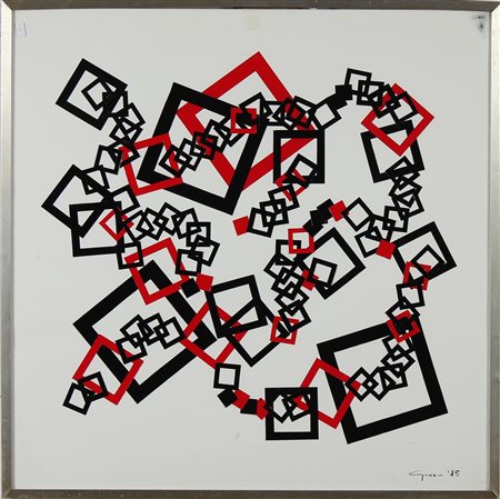 GUARINO GIUSEPPE (n. 1920) Senza titolo. 1975. Tecnica mista e collage su carta. Cm 70,00 x 70,00. Firma e data in basso a destra. Cornice presente