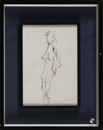 TRECCANI ERNESTO (1920 - 2009) Senza titolo. China su carta. Cm 20,00 x 28,00. Firma in basso a destra. Cornice presente