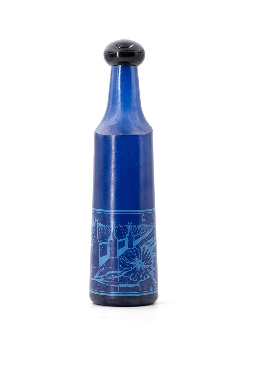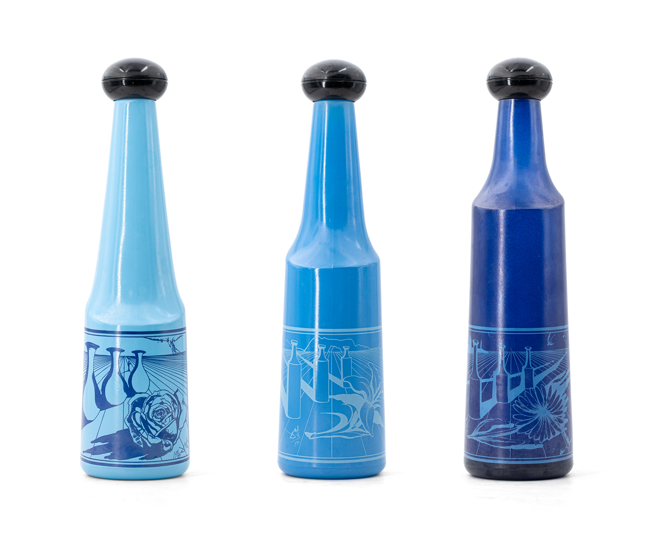 Lotto unico composto da 3 bottiglie in vetro serigrafate