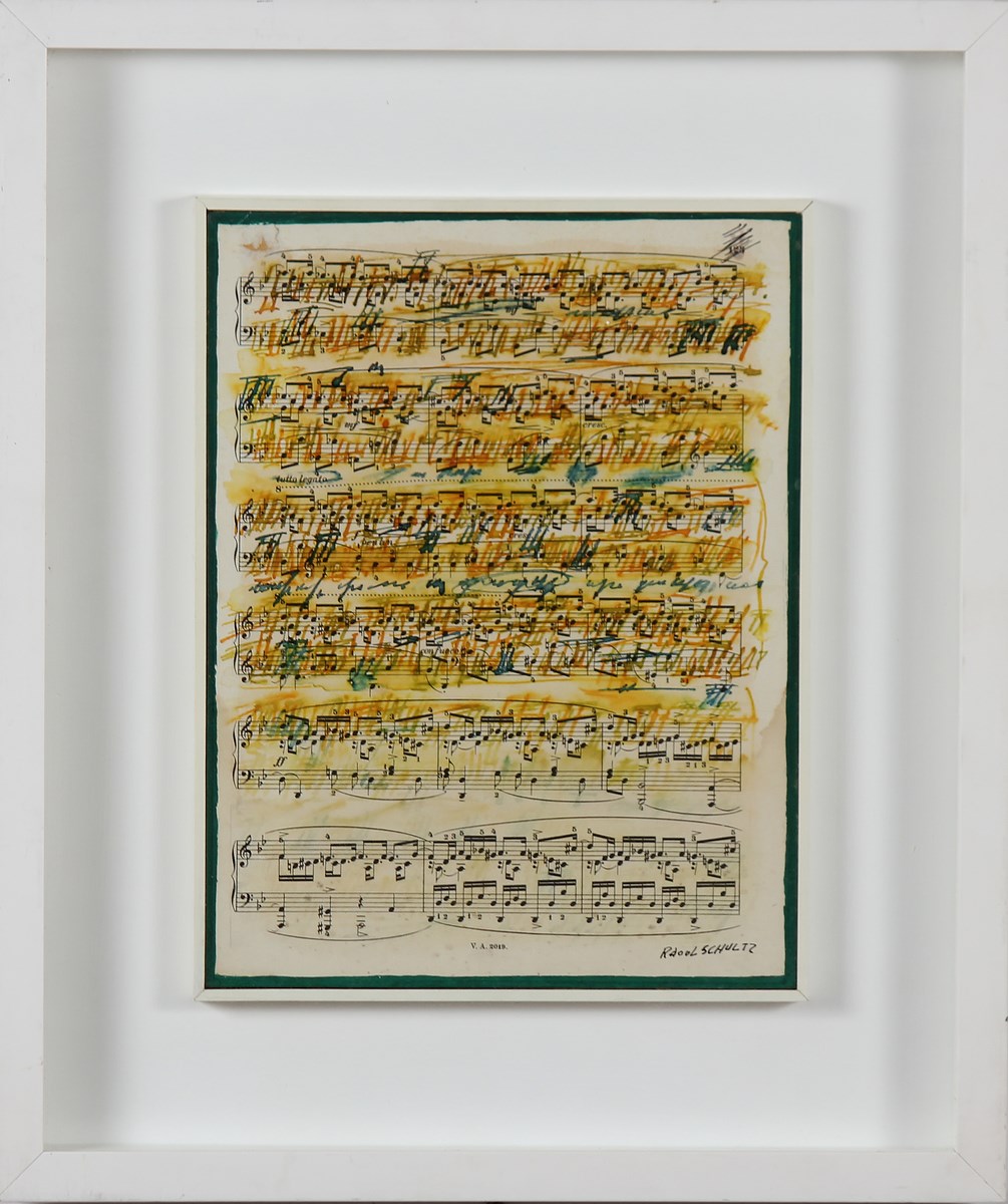 RAOUL SCHULTZ (1931 - 1971) Senza titolo. Tecnica mista su carta incollata su tavola. Cm 24,00 x 31,00. Firma in basso a destra. Cornice presente