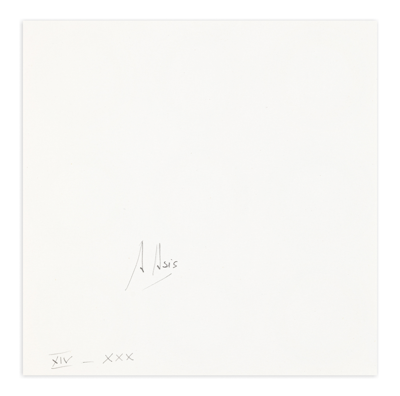 Firma e numerazione (Esemplare XIV/XXX) a matita al retro