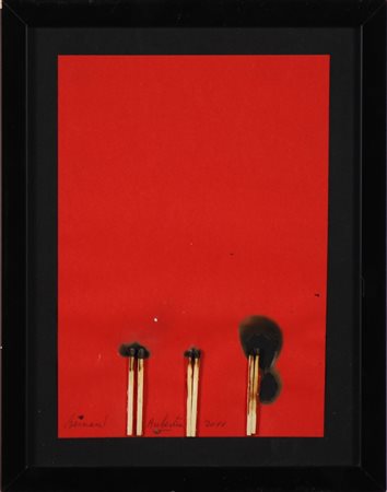 AUBERTIN BERNARD (n. 1934) Senza titolo. 2011. Fiammiferi su cartoncino rosso. Cm 15,00 x 21,00. Firma e data in basso. Autentica dell'artista su fotografia. Cornice presente