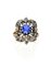 Anello in oro giallo e argento traforato con diamanti a mezza rosetta e al centro uno zaffiro ovale di ct. 1,841, g 6,00 circa misura 14/54. In scatola originale