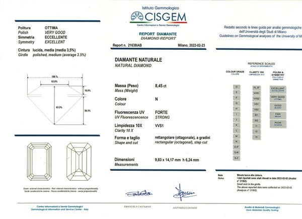 Appended diamond report CISGEM n. 21638IAB 23/02/2022, Milano