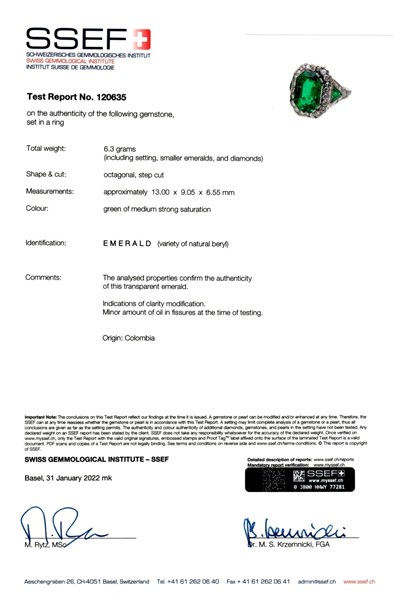 Appended gemmological report SSEF n. 120635 31/01/2022, Basel