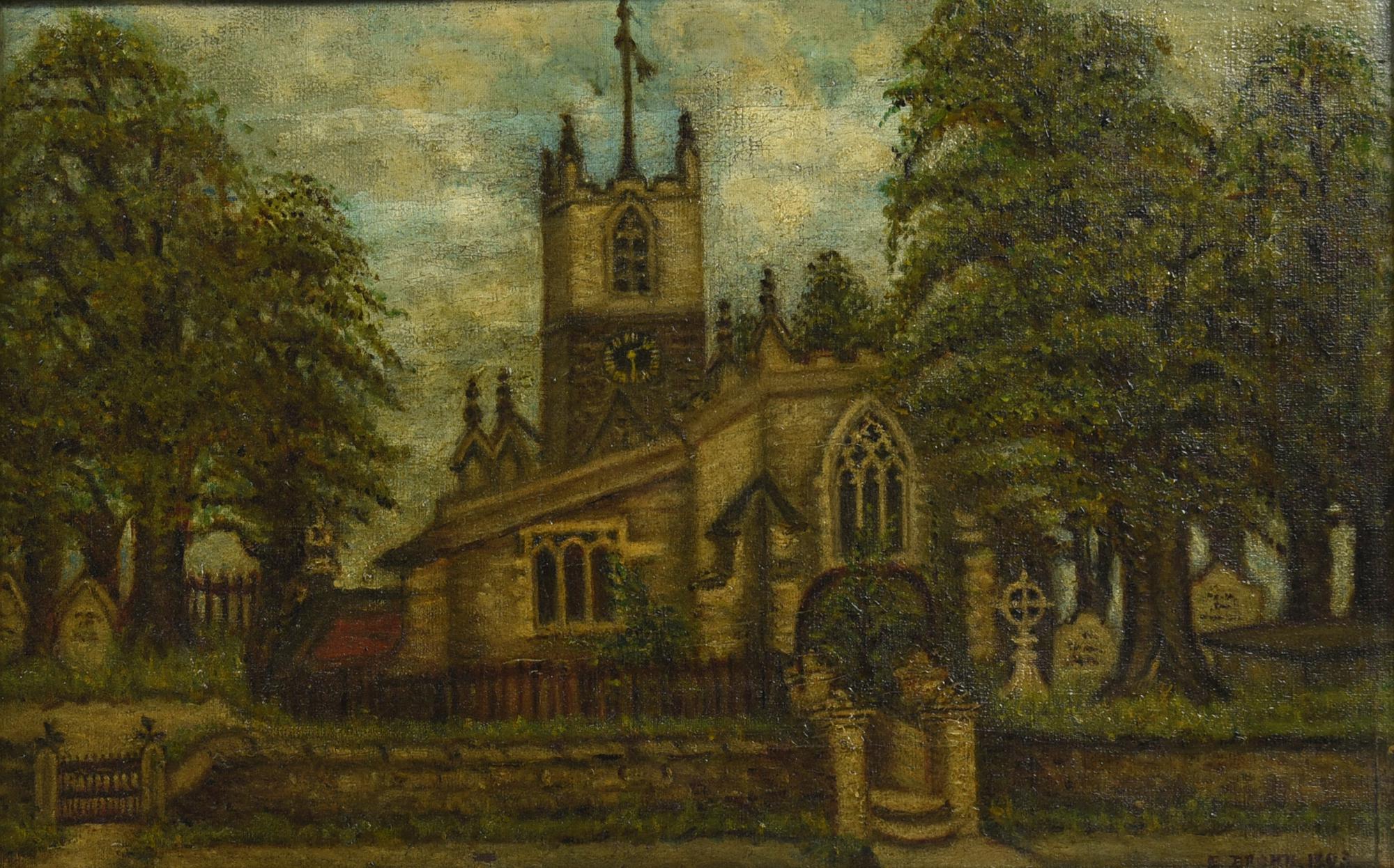 Scuola inglese della fine del XIX secolo CATTEDRALE GOTICA olio su tela, cm...