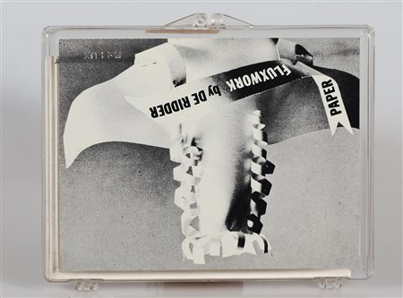DE RIDDER WILLEM Paper Fluxwork. Oggetto. Cm 12,00 x 9,50 x 0,50. Scatola di plexiglass contenente fogli di cartoncino e cartiglio dell'artista al fronte.
