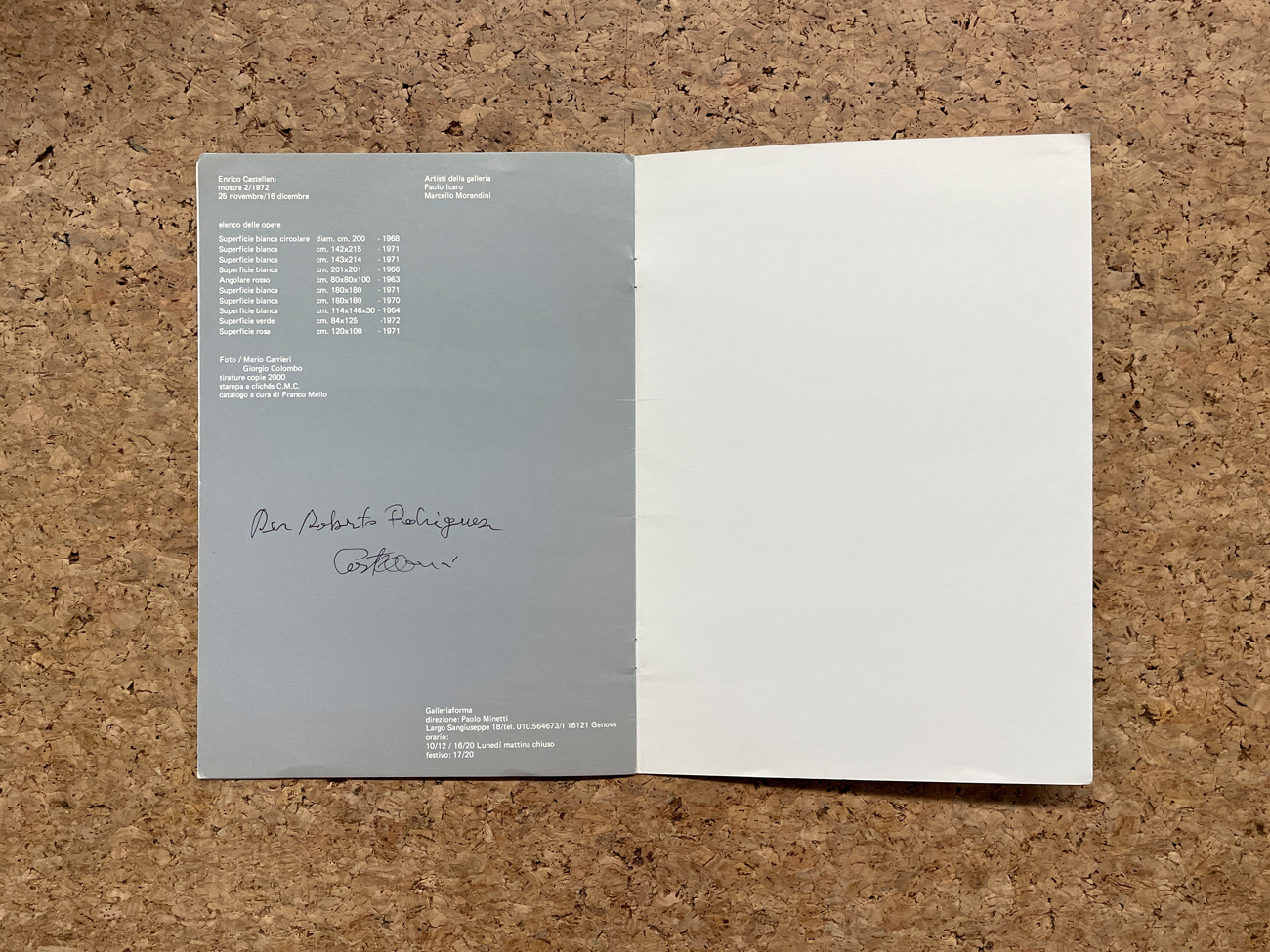 Catalogo riccamente illustrato, a cura di Franco Mello con fotografie di Mario Carrieri e Giorgio Colombo, edito in occasione dell'esposizione tenutasi presso Galleriaforma, Genova, 1972