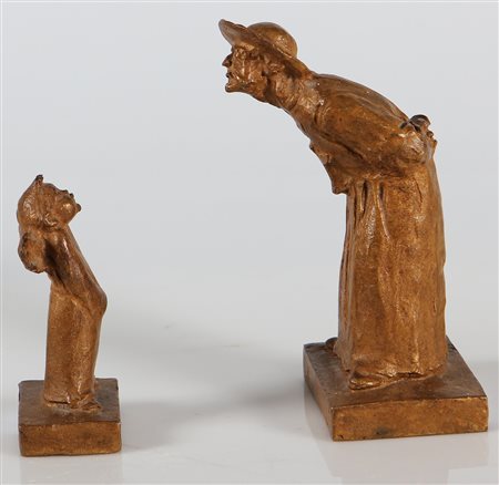 ROCCHI GUALBERTO (n. 1914) Lotto composto da n. 2 sculture raffiguranti un prete ed un angioletto. Bronzo. . Misure:17,5x9x9,5 cm,11xx6x4 cm. Firma alla base. In allegato all'opera catalogo Rocchi relativo all'operato dell'artista.