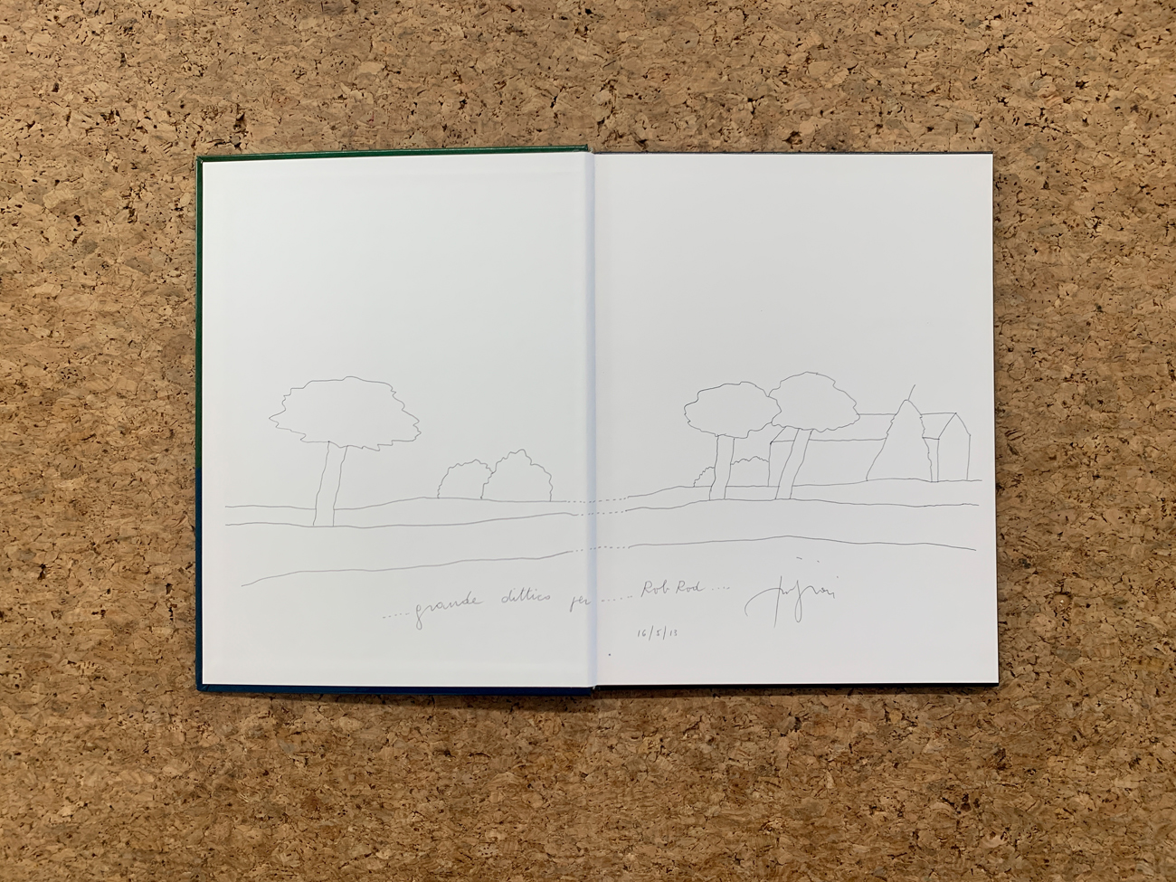 Reca firma, dedica e disegno dell'Artista (datato 16/5/13) all'interno