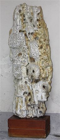 LEVERONE ADRIANO (n. 1953) Senza titolo. 1970. Gres. Cm 35,00 x 95,00 x 13,00. Dimensioni senza piedistallo in legno. Firma e anno in basso a sinistra.