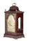 cassa in mogano ad arco spezzato con maniglia di trasporto, porta anteriore con cornice e applicazioni in ottone. Quadrante dorato a due fori di carica con numeri Romani e sfere neri firmato Rivers & Son – Cornhill - London, apertura del calendario e arco superiore con un quadrante suoneria/silenzio. Movimento con suoneria su campana firmato Rivers & Son – Cornhill - London, la piastra posteriore con bordo a foglie stilizzate. Rivers & Son lavorarono a Cornhill, Londra, tra il 1782 e il 1815 e furono i successori di Daniel De St. Leu. Dimensioni 51 x 28 x 19 cm. Stato di conservazione: *** discreto, mancanze.