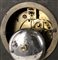quadrante circolare in metallo argentato a due fori di carica con numeri Romani e sfere neri, movimento con sospensione a filo, regolatore a pendolo e suoneria delle ore e delle mezze su campana. Dimensioni 47 x 34 x 12 cm. Stato di conservazione: **** buono.