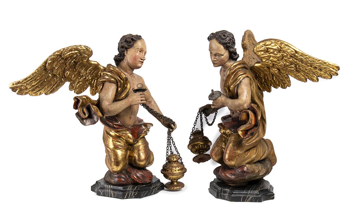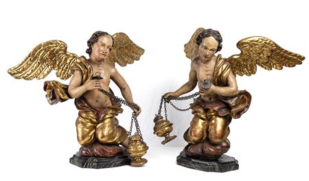 Coppia di putti alati italiani con turibolo - Italia centrale, seconda metà del XVIII secolo