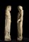 in marmo statuario bianco raffiguranti l'arcangelo Michele (con spada) e l'arcangelo Gabriele (con tromba). Opera di ignoto scultore, si collocano nella produzione genovese del XVII secolo, ancora influenzata dai modi manieristi della scultura tardo-cinquecentesca. Altezza 97 cm ognuna. Stato di conservazione: *** discreto, la mano sinistra dell'arcangelo Michele è rotta ed è mancante un dito della mano destra dell'arcangelo Gabriele.