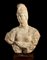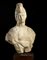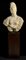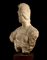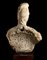 in marmo bianco raffigurante una figura classica di soldato. Posto su colonna lignea. Altezza scultura 78 cm, altezza totale 150 cm. Stato di conservazione: *** discreto, molto corroso.