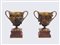 vasi brucia incensi, in marmo rosso “griotte” con applicazioni in bronzo dorato finemente cesellato, la coppa centrale presenta delle scene allegoriche. Base di forma quadrangolare. Dimensioni 19 x 17 x 13 cm. Stato di conservazione: **** buono.