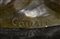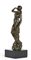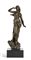figura di fanciulla in metallo fuso rifinita in bronzo, stante su una base di marmo nero. Firmata "Caussé". Altezza 29 cm, base 5 x 11 x 11 cm. Altezza con porta lampada 46 cm. Stato di conservazione: **** buono, piccoli difetti alla base.