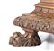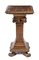In noce intagliata a motivi floreali, capitello in stile corinzio e piedi ferini. Dimensioni 81 x 45 x 45 cm. Stato di conservazione **** buono.