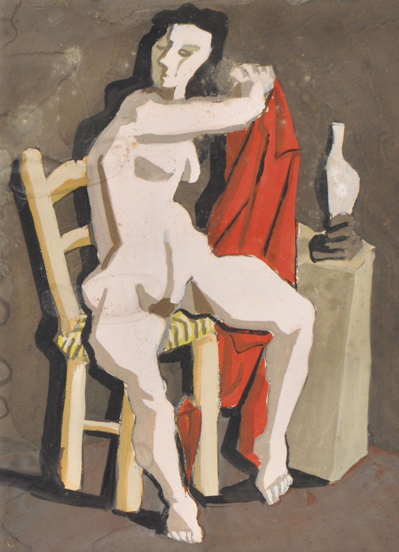Cesare Peverelli (Milano 1922 - Parigi 2000) Donna seduta;Olio su cartone, 32 x 24,5 cm