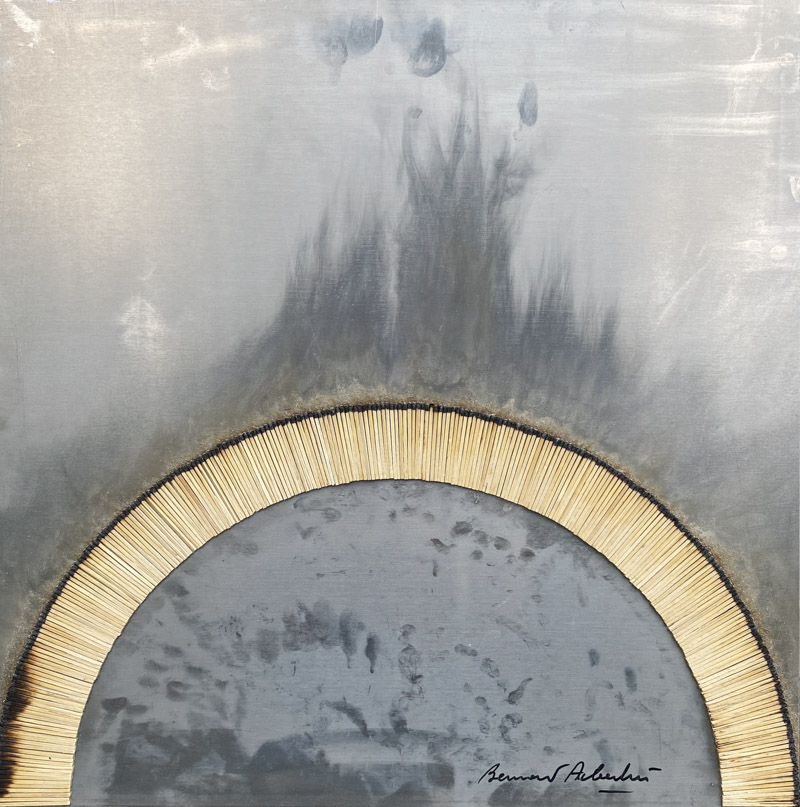 Bernard Aubertin (Fontenay-aux-Roses 1934 - Reutlingen 2015) Dessin de feu circular, 2000;Fiammiferi bruciati su lamiera, 60 x 60