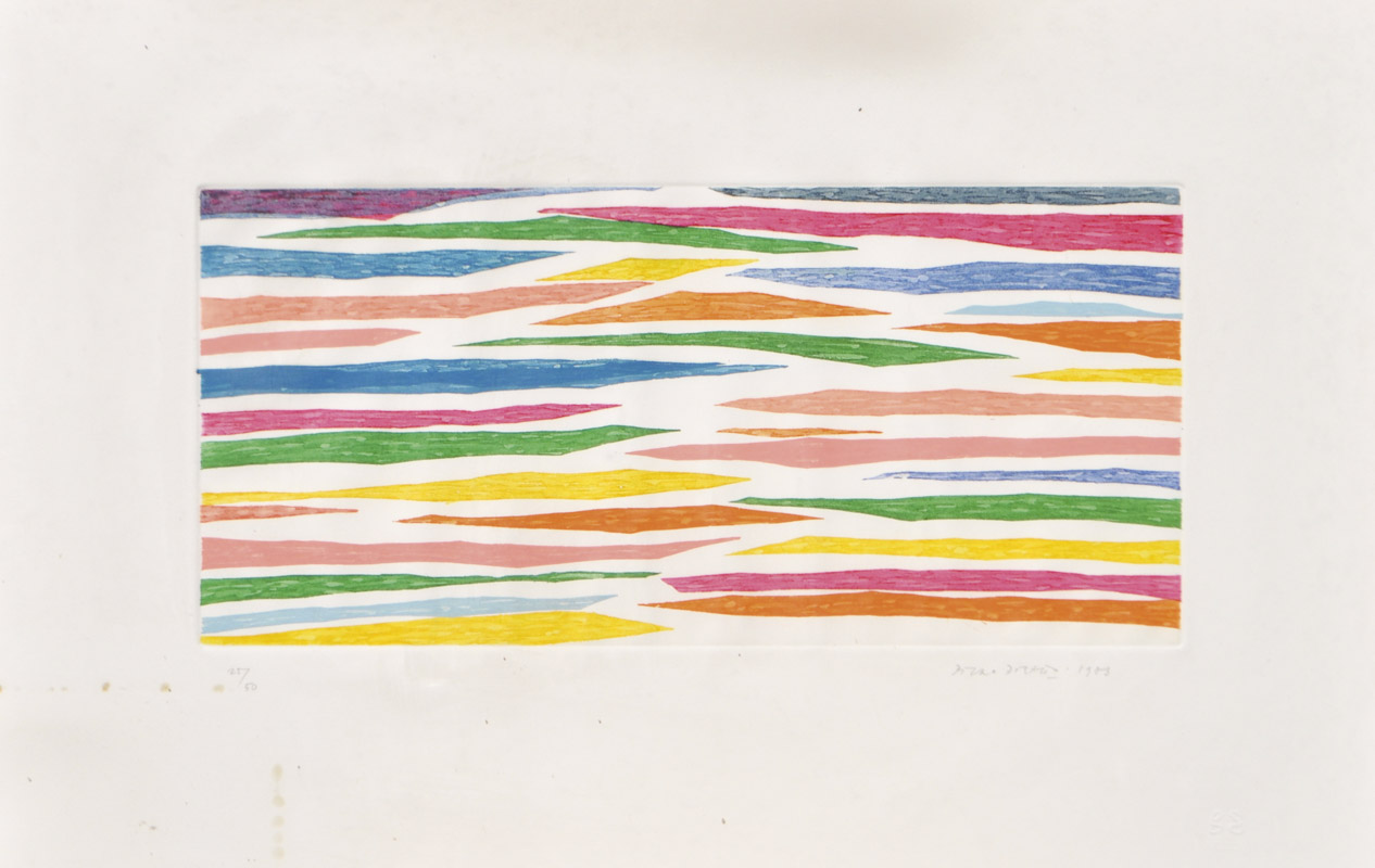 Piero Dorazio (Rom/Roma 1927 - Perugia 2005) Profili, 1983;Acquatinta a col. su carta, 22 x 48 cm, foglio 50 x 70 cm, timbro a secco "GG", fioriture della carta in basso a sinistra che non interessano l'incisione.
