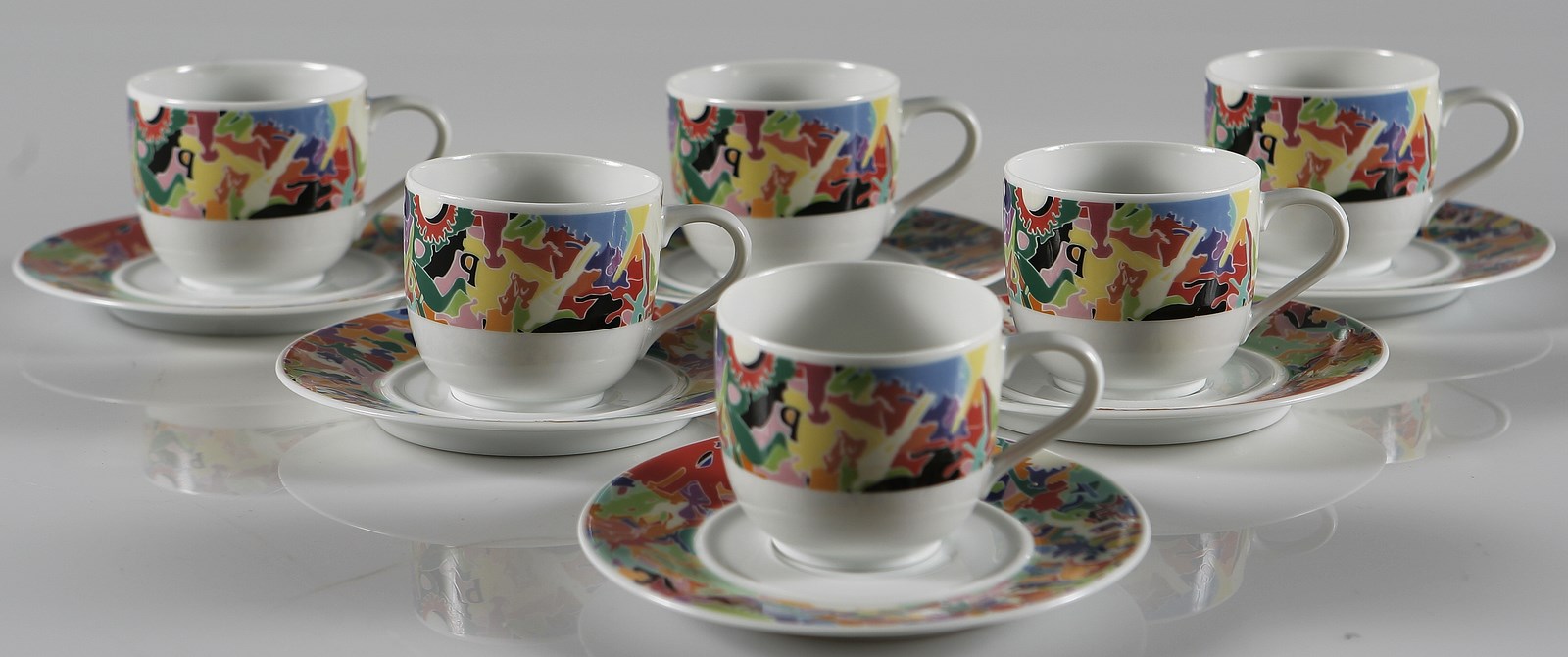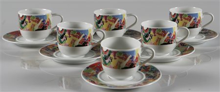 BOETTI ALIGHIERO (1940 - 1994) Servizio da caffè. Ceramica. . Servizio realizzato per Alessi composto da: n. 6 piattini (diametro 15 cm) e n.6 tazzine (6,5x9x7cm).