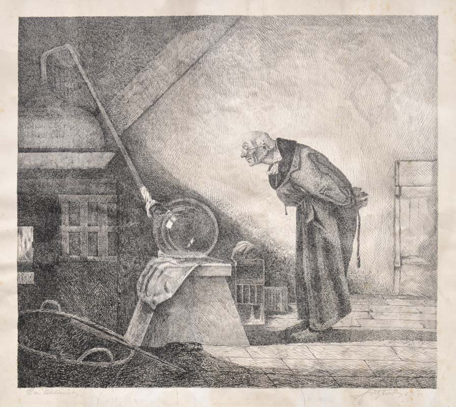 Fritz von Ebner nach/da Carl Spitzweg L‘alchimista, 1922;China, 53 x 61,5 cm,...