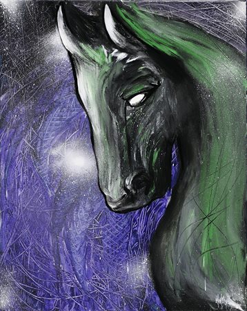 MENADE (n. 1985) Senza titolo. 2012. Acrilico su tela. Cm 40,00 x 50,00. Firma in basso a destra. Al retro firma, data e titolo.