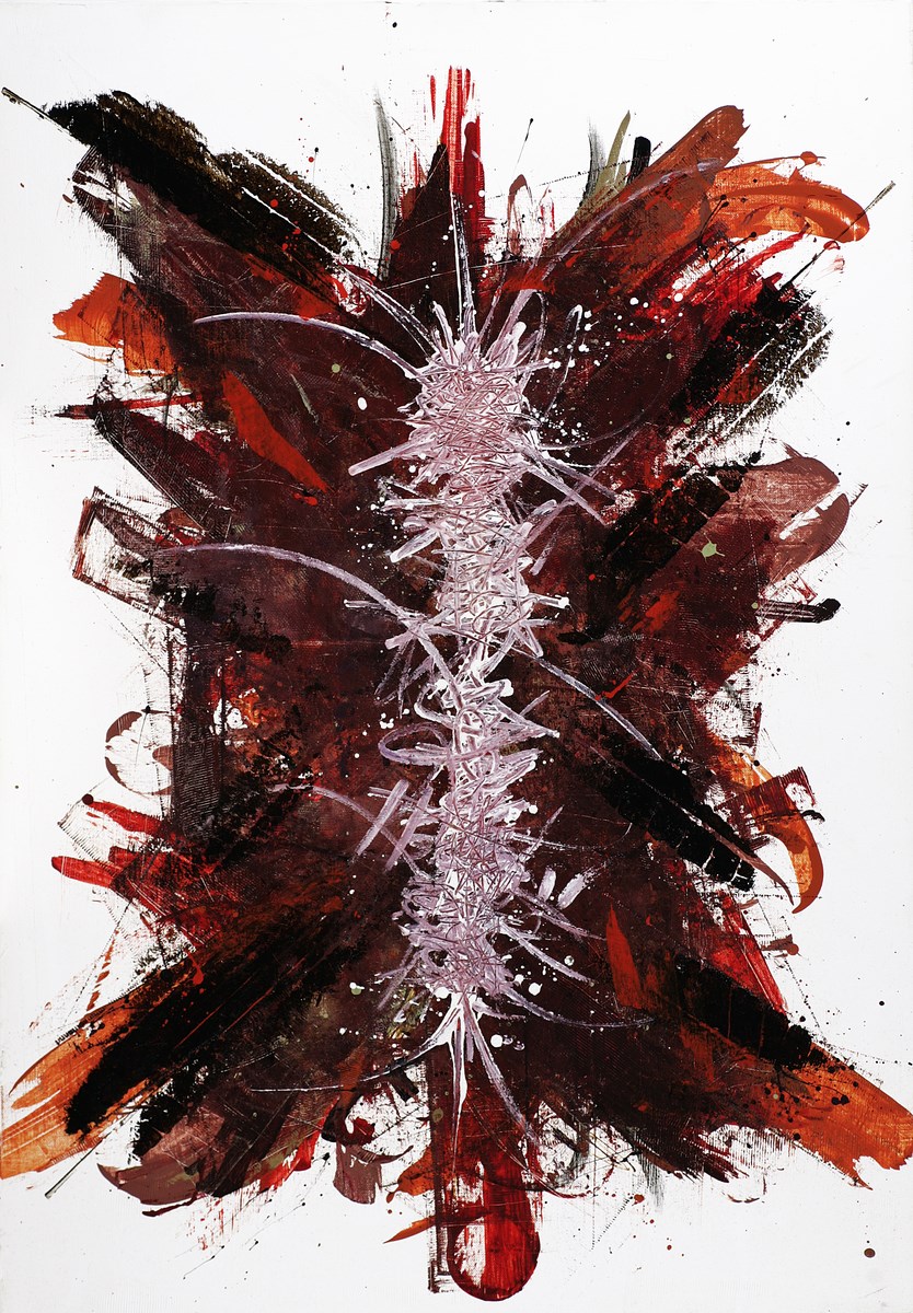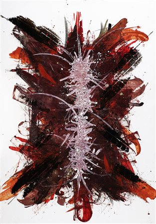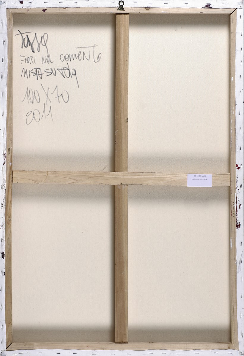 TAWA (n. 1975) Fiori nel cemento. 2011. Tecnica mista su tela. Cm 70,00 x...