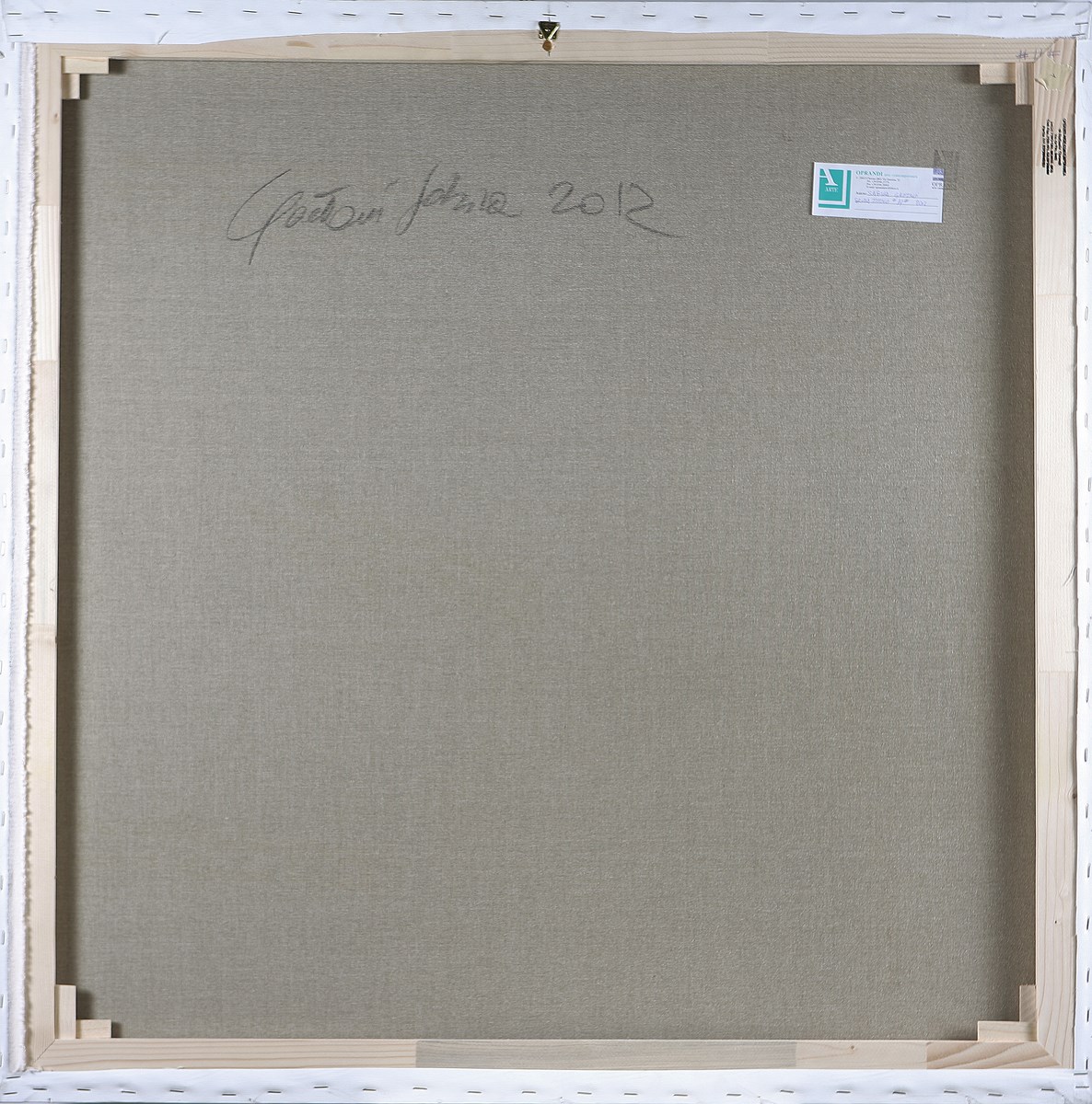 GAETANI SABRINA (n. 1973) Senza titolo. 2012. Tecnica mista su tela. Cm 100,00 x 100,00 x 2,00. Al retro firma, data, timbro e cartiglio descrittivo della Galleria Oprandi arte contemporanea, Clusone (BG). Autentica dell'artista su fotografia. In allegato all'opera depliant relativo all'artista nel quale è pubblicata l'opera.