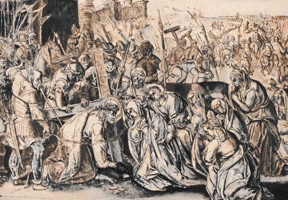 Artista tedesco meridionale del XVI sec. Cristo che porta la croce;China acquerellata, 20,2 x 28,2 cm, carta montata su cartone, abbrasioni