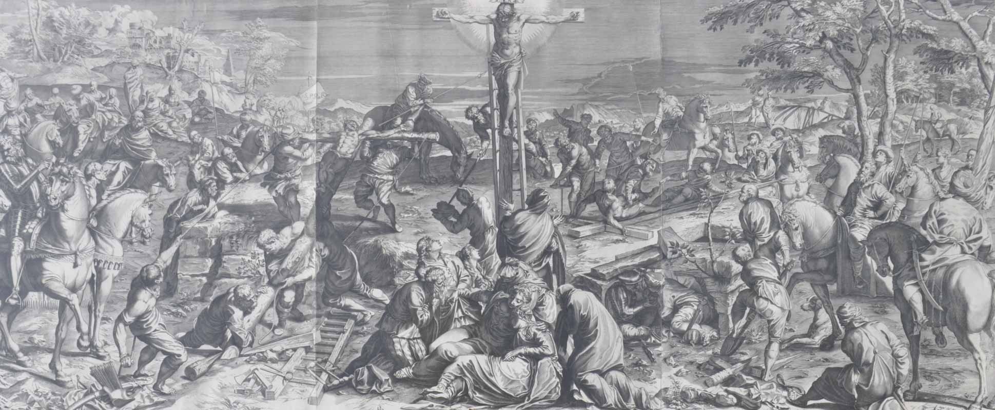 Agostino Carracci nach/da Jacopo Robusti (Tintoretto, 1518 - 1594) Crocifissione, 1562/1589;Incisione su rame, 49 x 120 cm, in cornice