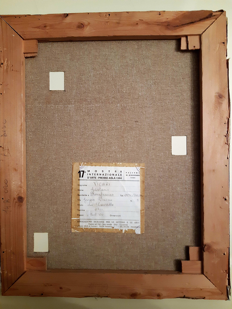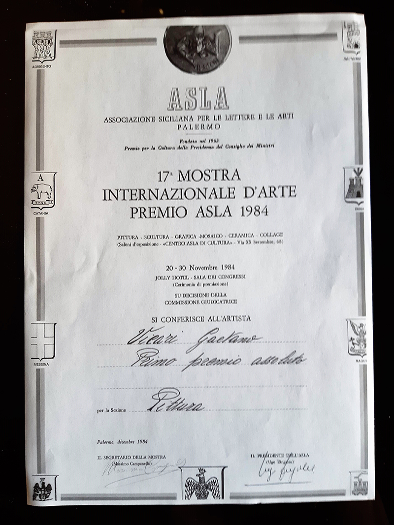 Certificazione: Primo Premio assolutto "Mostra internazionale d'Arte Premio Asla" Palermo 1984
