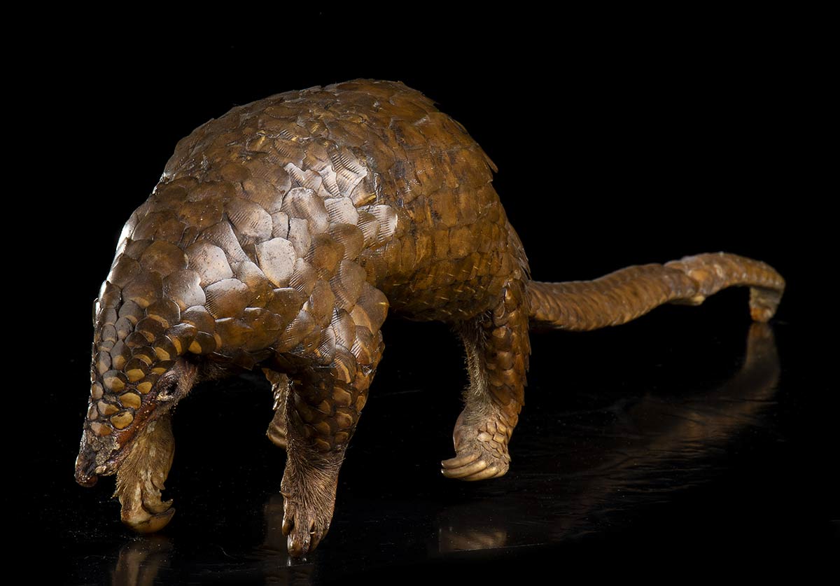 Tassidermia di pangolino (MANIS TERTRADACTYLA-PHOLIDOTA MANIDAE). Esemplare naturalizzato pre-convenzione. Importato negli anni 1950/1960. A seguire un certificato di expertise da un esperto di collezioni zoologiche. Dimensioni: 80 cm. Con CITES.