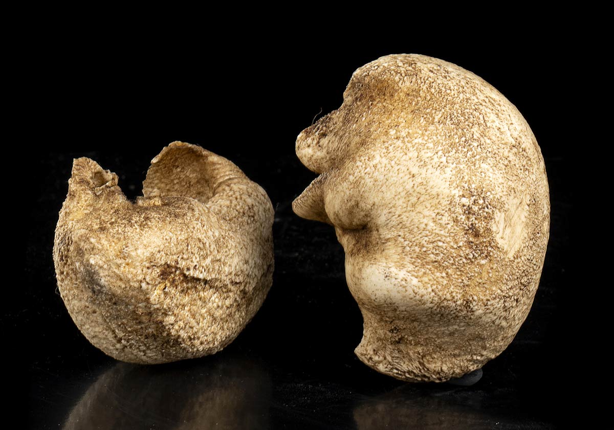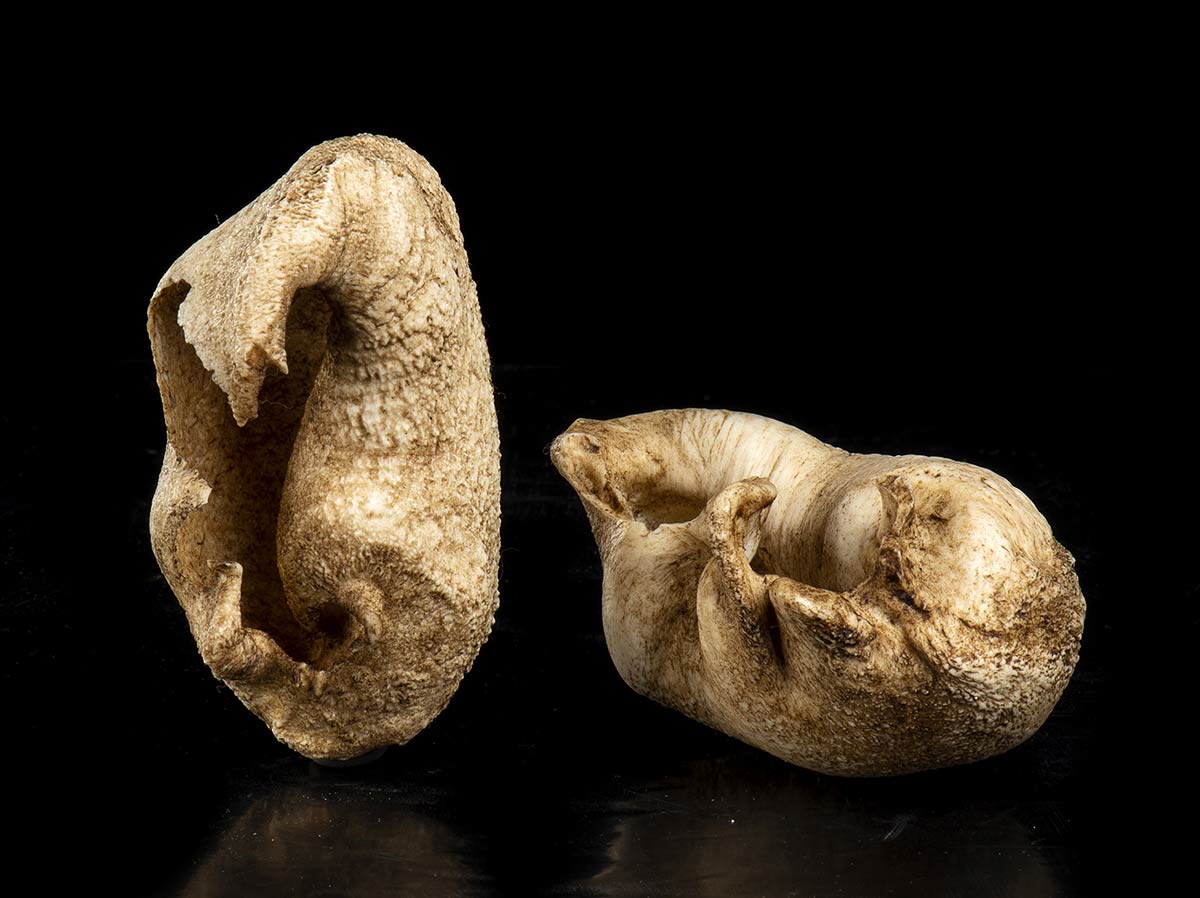 Due timpani fossili di balena blu (Balaenoptera Musculus) perfettamente conservati. Dimensioni: 11 cm cad.