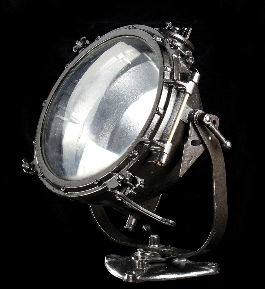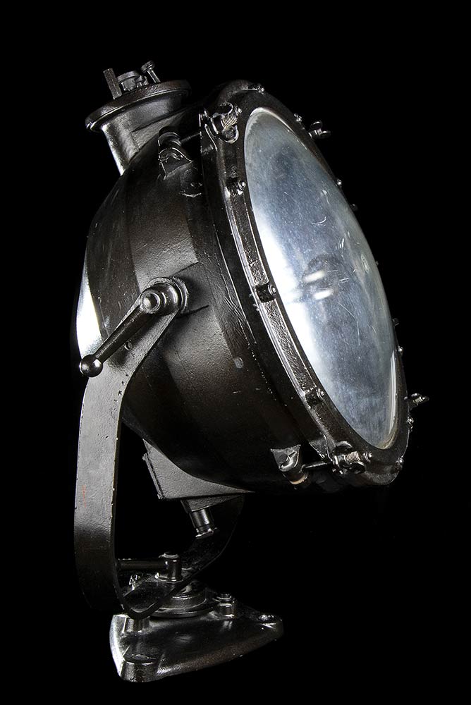 Faro da nave della Seconda Guerra Mondiale in ghisa e vetro. Stati Uniti, Inizi XX secolo. 30 KG circa, 80 x 75 x 60 cm