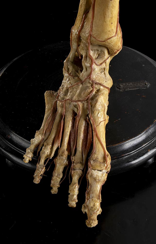 Modello di gamba anatomica autentica ricca di inserti in cera che riproducono vene e vasi sanguigni preparata dal Dott. Otto Seifert (1888-1950). Dimensioni : 70 cm. Lotto visibile su prenotazione a Londra