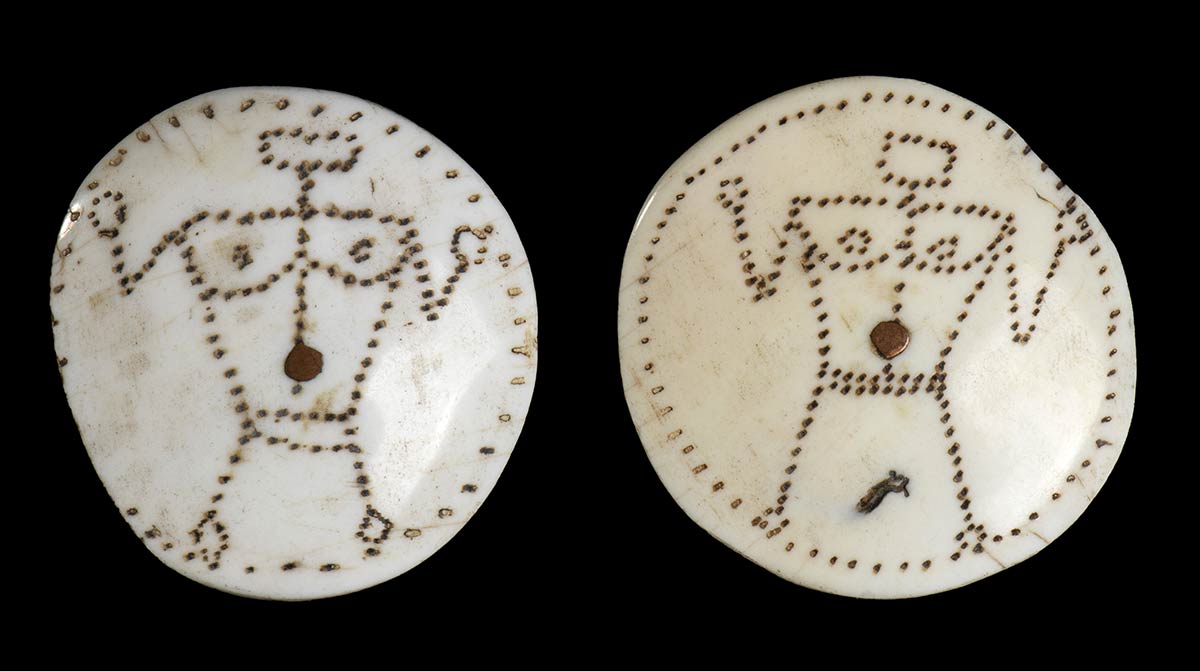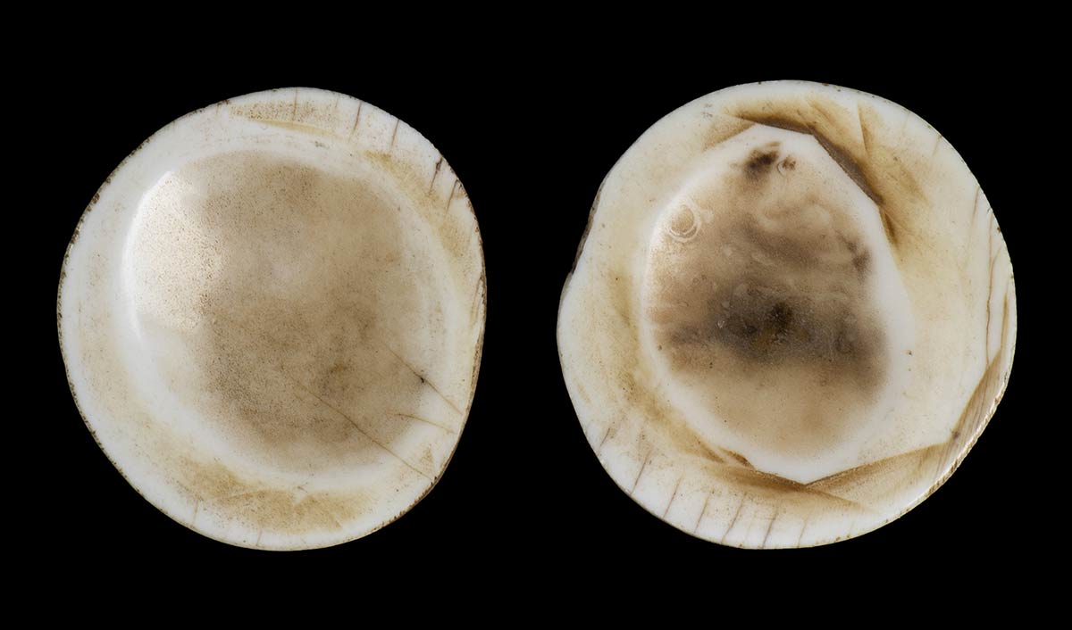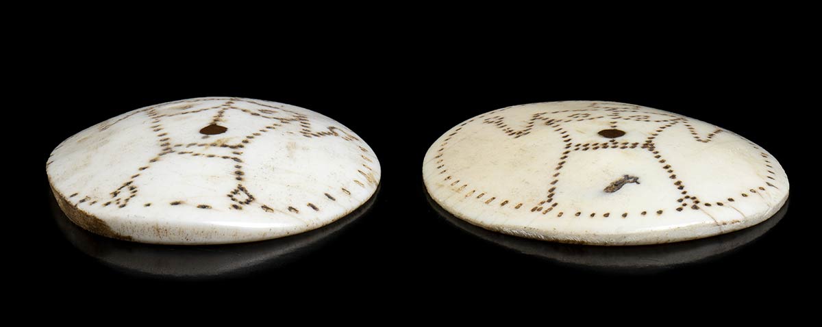 Due finali o pendagli di un corredo a collana tradizionale Naga. India, XIX secolo. Dimensioni: 5 cm cad.