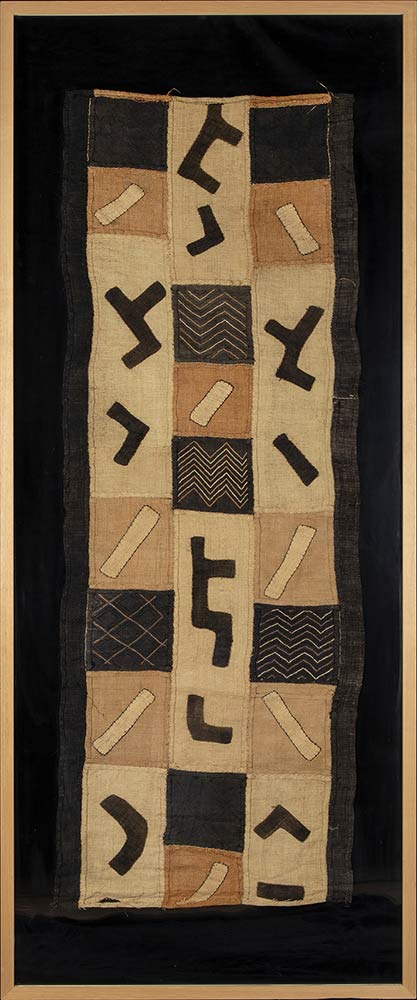 Grande tessuto in rafia Kuba incorniciato. Congo, metà XX secolo. Dimensioni: 185 x 77 cm