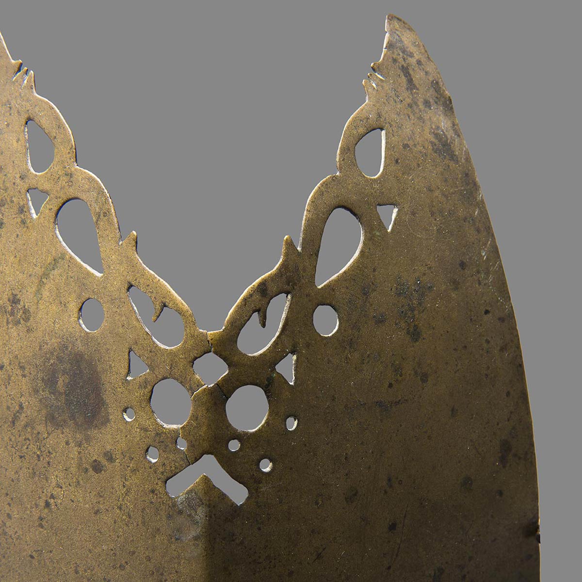 Frontale da guerriero del popolo Dayak realizzato in bronzo. Borneo, XIX secolo. Dimensioni 17 x 12 cm