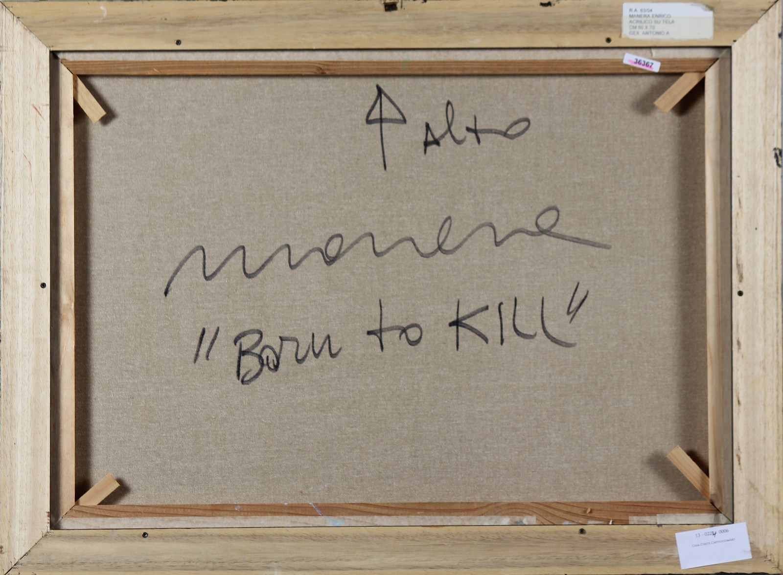 MANERA ENRICO (n. 1947) Born to kill. Acrilico su tela. Cm 70,00 x 50,00. Al retro firma e titolo. Cornice presente