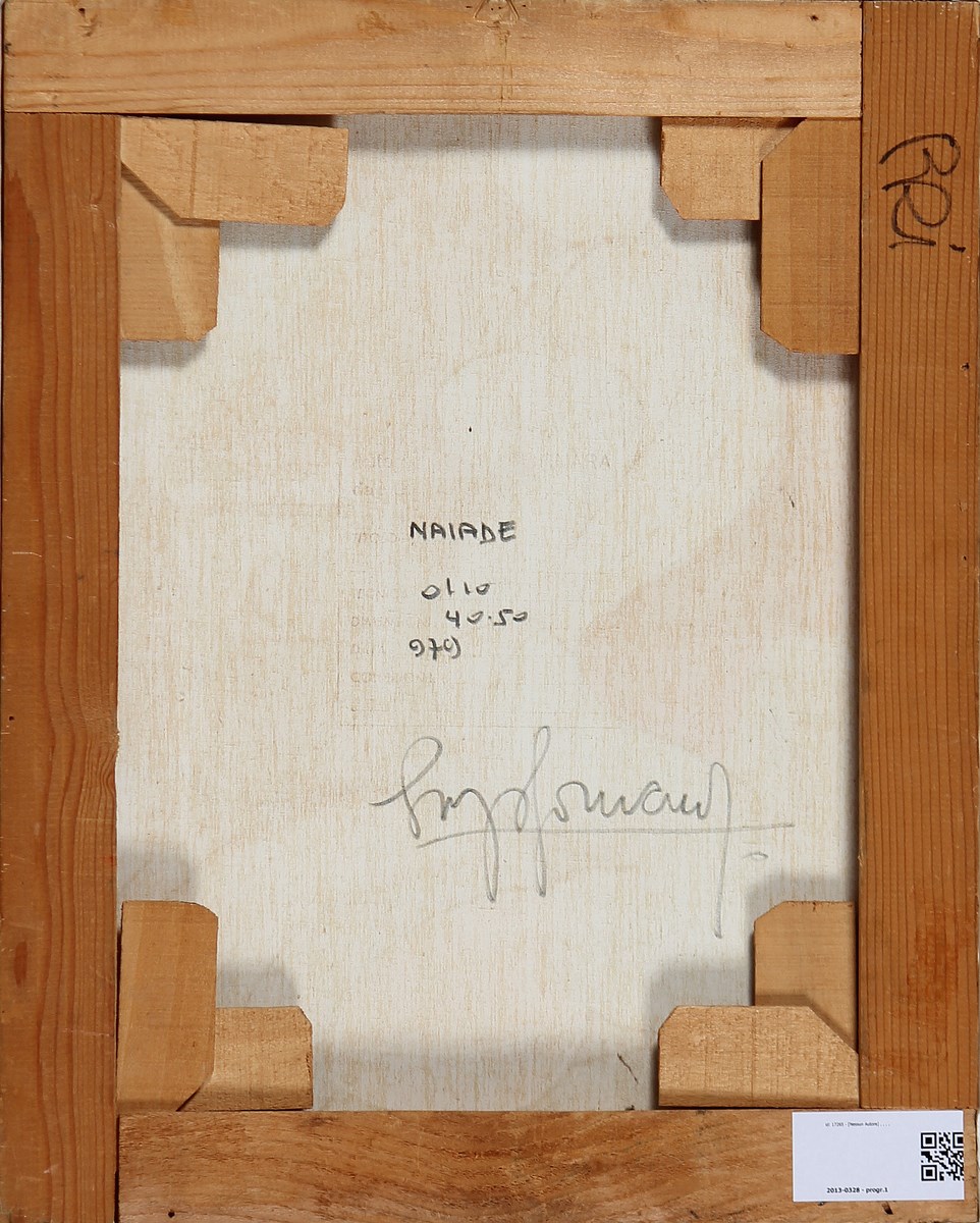 FORNARA ENZO (n. 1925) Naiade. 1979. Olio su tela . Cm 40,00 x 50,00. Firma e data in basso a sinistra. Al retro titolo e firma.